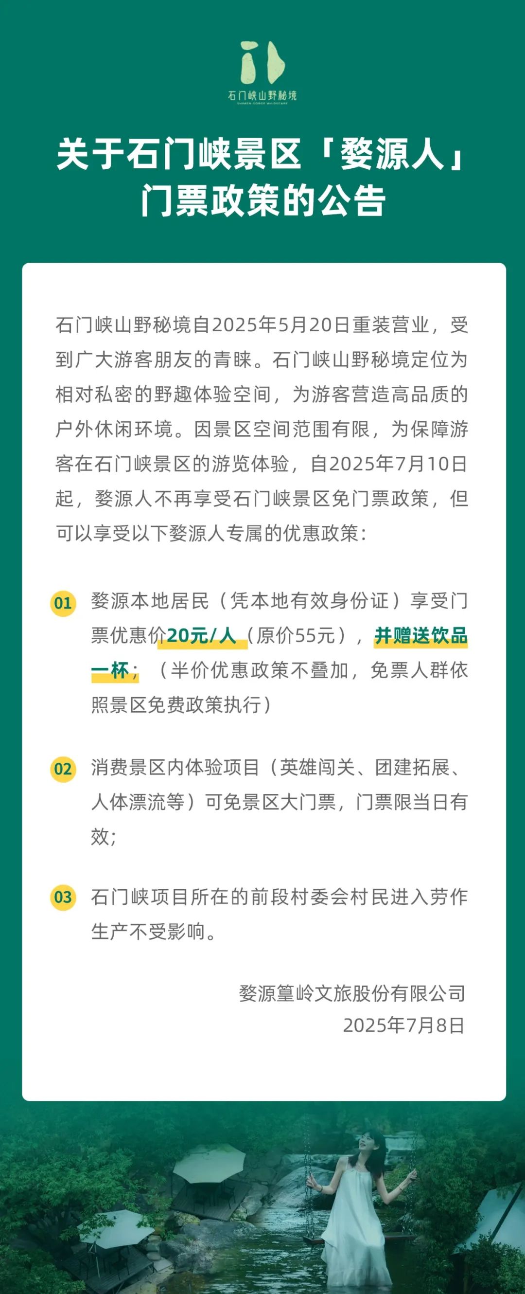 婺源人速看!關(guān)于石門峽&篁嶺景區(qū)「婺源人」門票政策的公告
