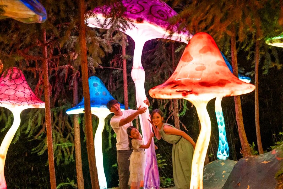 步入“魔幻流光森林”,白日靜謐的山林在夜里煥發(fā)新生。腳下是跳躍的鋼琴階梯,流光在小徑上蜿蜒,編織出一個唯美空靈的夢境。在這里,每個人都成了童話里的主角,每一步都踏在星辰之上。