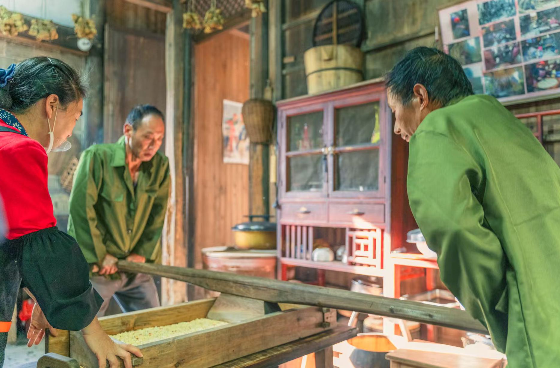 Savor authentic local snacks in historic halls: · Liushun Hall: Enjoysteamed rice cakes, fried rice candy, and tea eggs amid a traditional village setting. · Wugui Hall: Sampledeep-fried dough and rice dumplings (zongzi) in a historic courtyard. · Yixin Building: Taste sweet delights likeglutinous rice balls andLiangfen (cold jelly noodles) in a festive atmosphere. Fromsunrise to sunset, Huangling treats you to aculinary journey steeped in nostalgia andflavor.