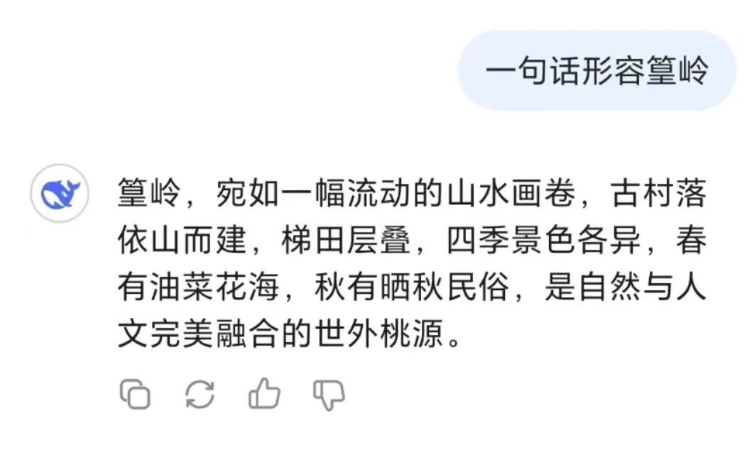 近期,國(guó)內(nèi)AI智能deepseek“爆火”出圈,其強(qiáng)大的功能引得一片叫好,甚至被外國(guó)友人稱(chēng)為“神秘的東方力量”,那么deepseek眼里的婺源篁嶺是什么樣子的呢?