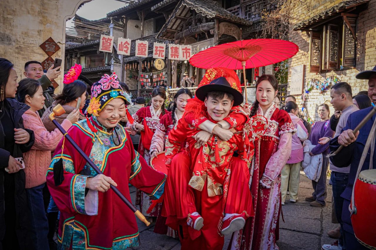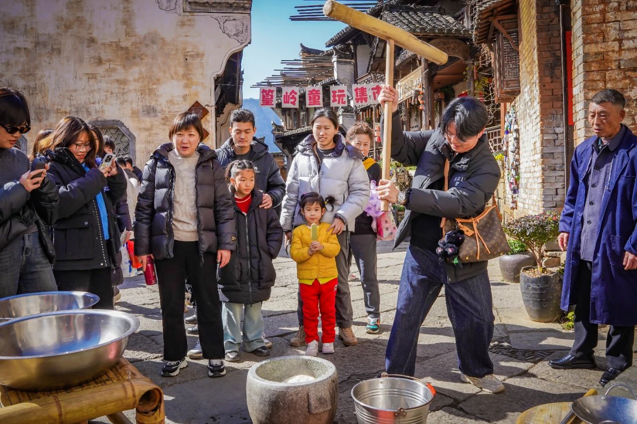 村姑攔門(mén)酒、徽州婚俗、儺舞……篁嶺村里的民俗活動(dòng)互動(dòng)感十足,讓你沉浸式感受韻味悠長(zhǎng)的古村年味,元宵節(jié)當(dāng)天還有猜燈謎、吃湯圓活動(dòng)等你來(lái)體驗(yàn)。