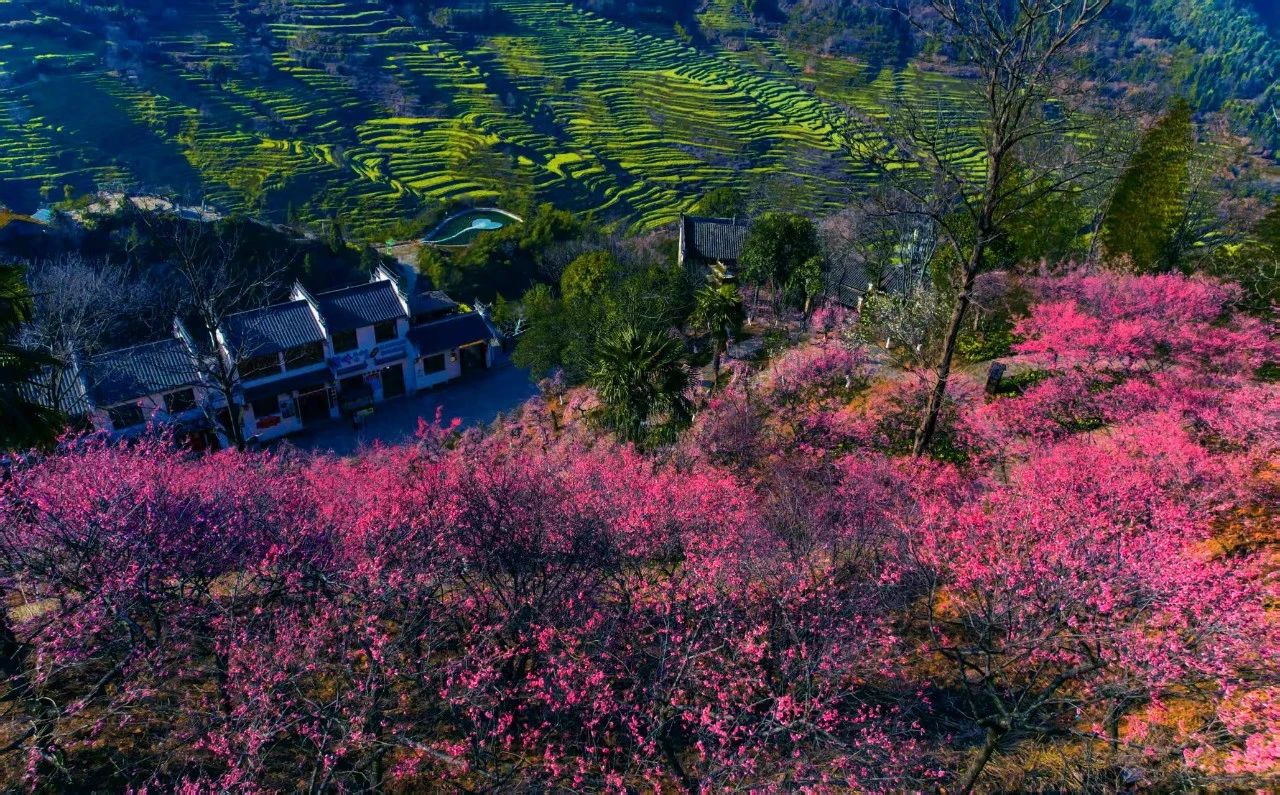 初春時(shí)節(jié),篁嶺紅梅怒放,映襯著粉墻黛瓦的古村和遠(yuǎn)方翠綠的梯田,書(shū)寫(xiě)著春日里最動(dòng)人的篇章。