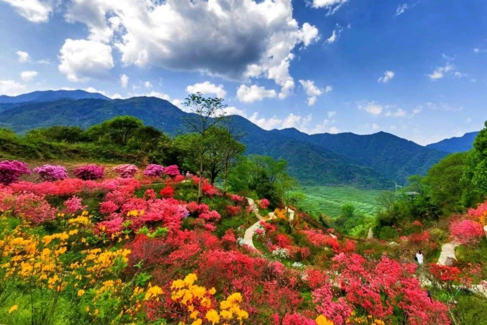 而櫻花長廊和杜鵑花園的陸續(xù)綻放將篁嶺的花期延長至5月份,讓游客春末亦有花可賞。