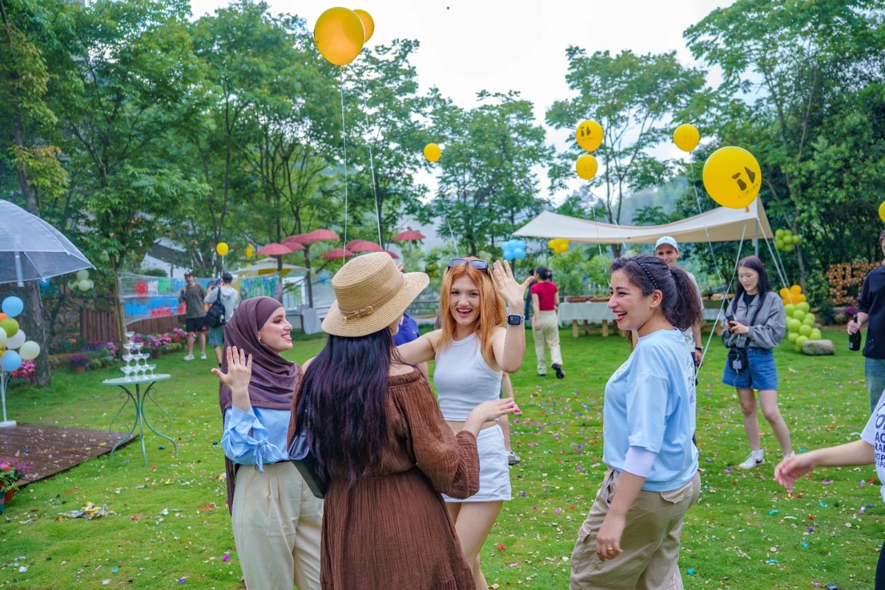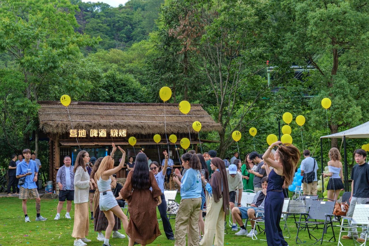 隨后,草坪音樂會將現(xiàn)場氛圍推向高潮——民謠吉他的弦音掠過溪流,非洲鼓點(diǎn)應(yīng)和著山風(fēng)節(jié)奏,來自世界各地的朋友們紛紛隨樂起舞,在自然聲場中感受音樂與山水的共生。
