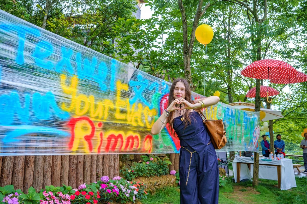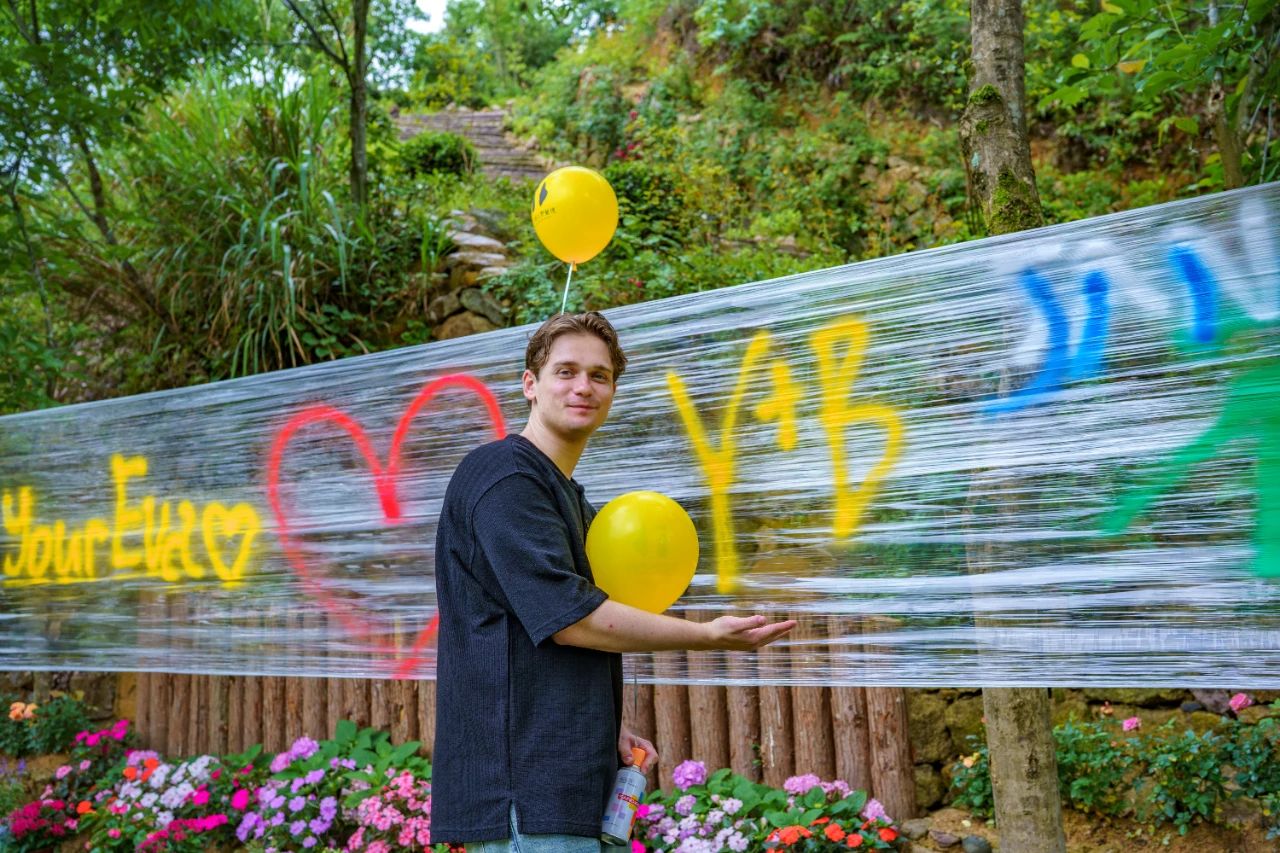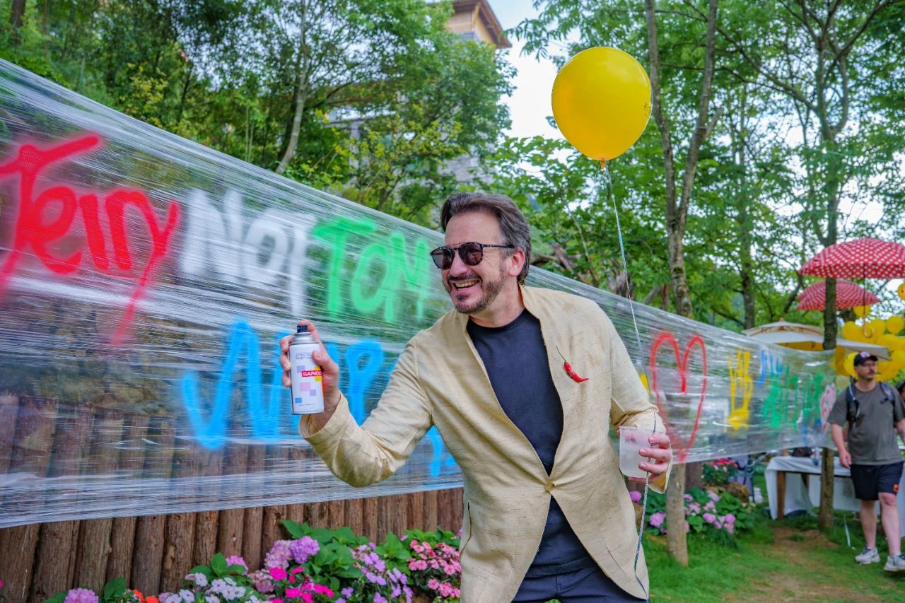 最具創(chuàng)意的當(dāng)屬涂鴉體驗(yàn)區(qū),達(dá)人們手持彩色噴漆,在透明條幅上盡情留下自己的打卡痕跡,鮮艷的色彩映襯著繁花綠樹,化作流動(dòng)的藝術(shù)展,將最美好的集體記憶留存。