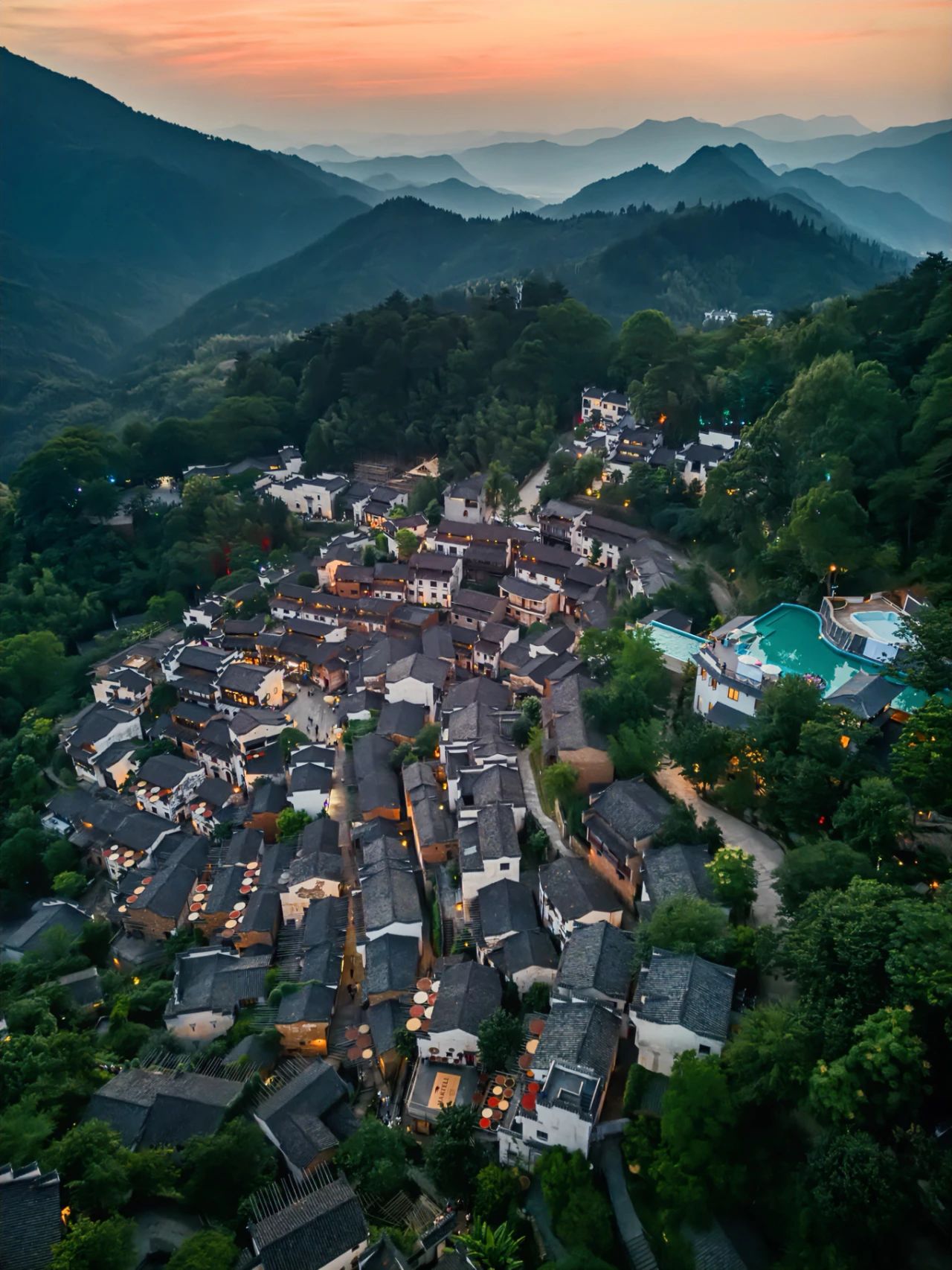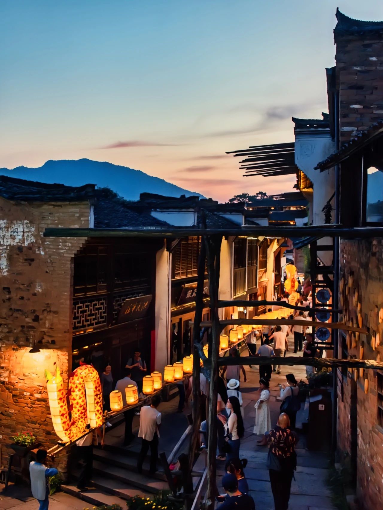 當(dāng)夕陽沉入山巒,篁嶺的燈火便一盞一盞亮起來。木窗里透出暖黃的光,屋檐下掛著紅燈籠,石板路上映著斑駁的影子……整座山村像是被星光點燃,溫柔得不像話。有人說,這里像極了「紅塵客?!?/span>,沒有城市喧囂,只有燈火可親。
