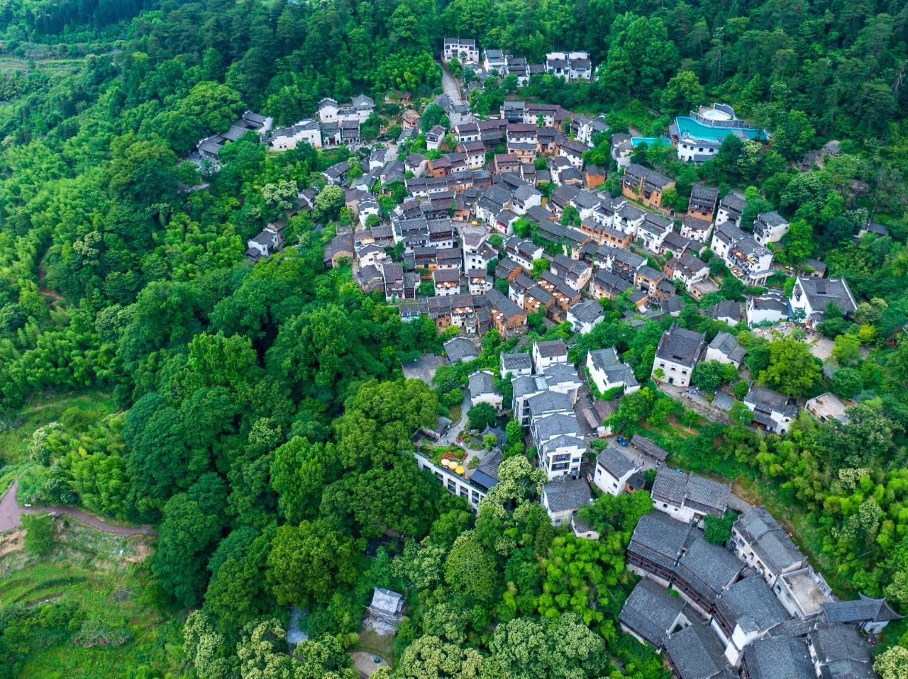 篁嶺古村隱于青山,微風(fēng)裹挾著草木清香,吹散暑氣與煩躁。漫步在青石板路上,穿梭于白墻黛瓦間,斑駁樹影為你遮陽,穿堂而過的山風(fēng)送來愜意。累了便在眾屋中小憩,品一盞香茗,看云卷云舒