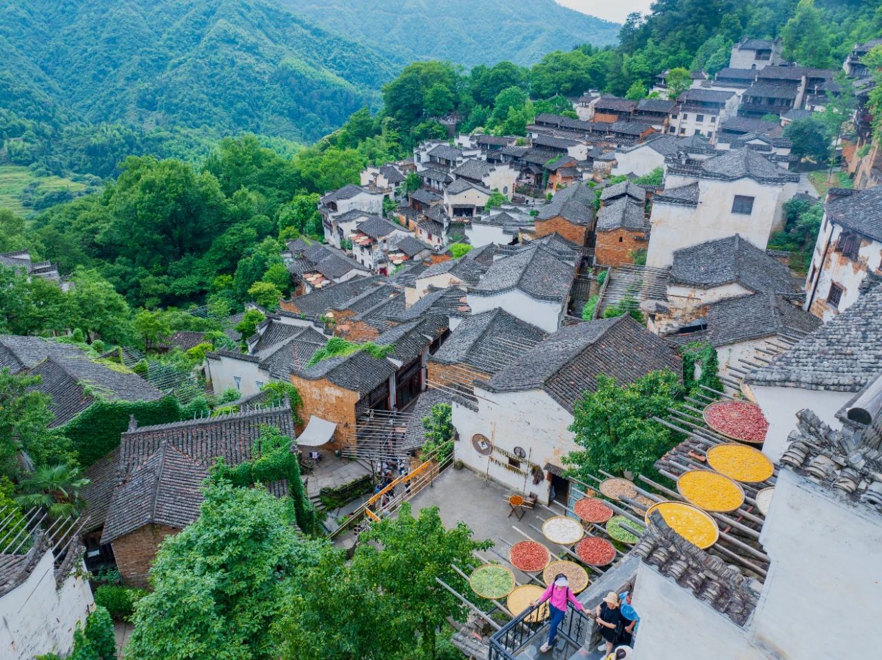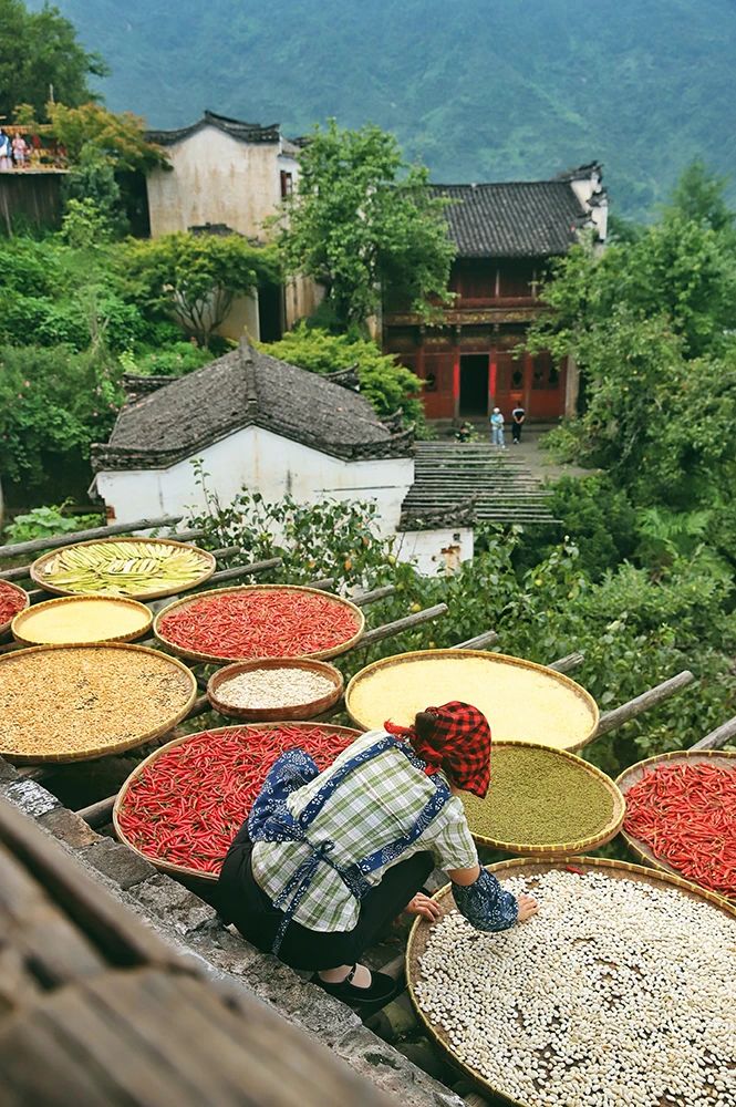 曬秋人家的竹匾里,紅辣椒、黃玉米、白蕓豆組成五彩斑斕的畫卷。在這里,一磚一瓦都在訴說著最動人的鄉(xiāng)愁故事。