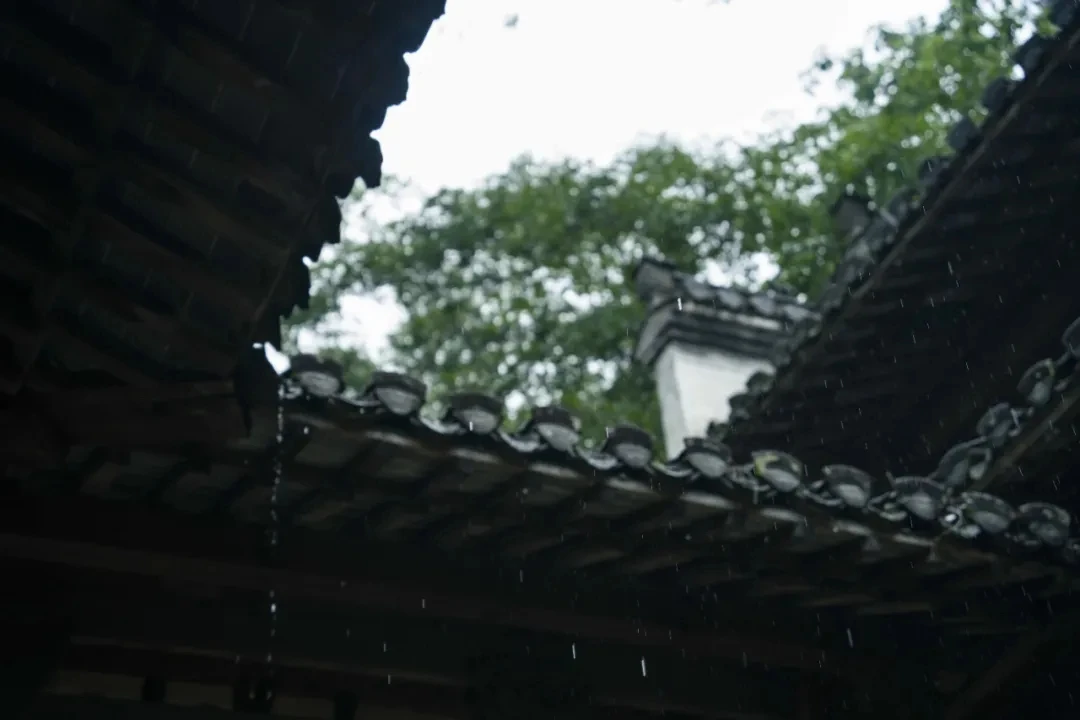 若逢細(xì)雨飄落,青石板路被沖刷得發(fā)亮,白墻黛瓦在煙雨中若隱若現(xiàn),檐角滴落的水珠串成簾幕,倒映著遠(yuǎn)處朦朧的山巒—— 這便是獨(dú)屬篁嶺的煙雨江南景。