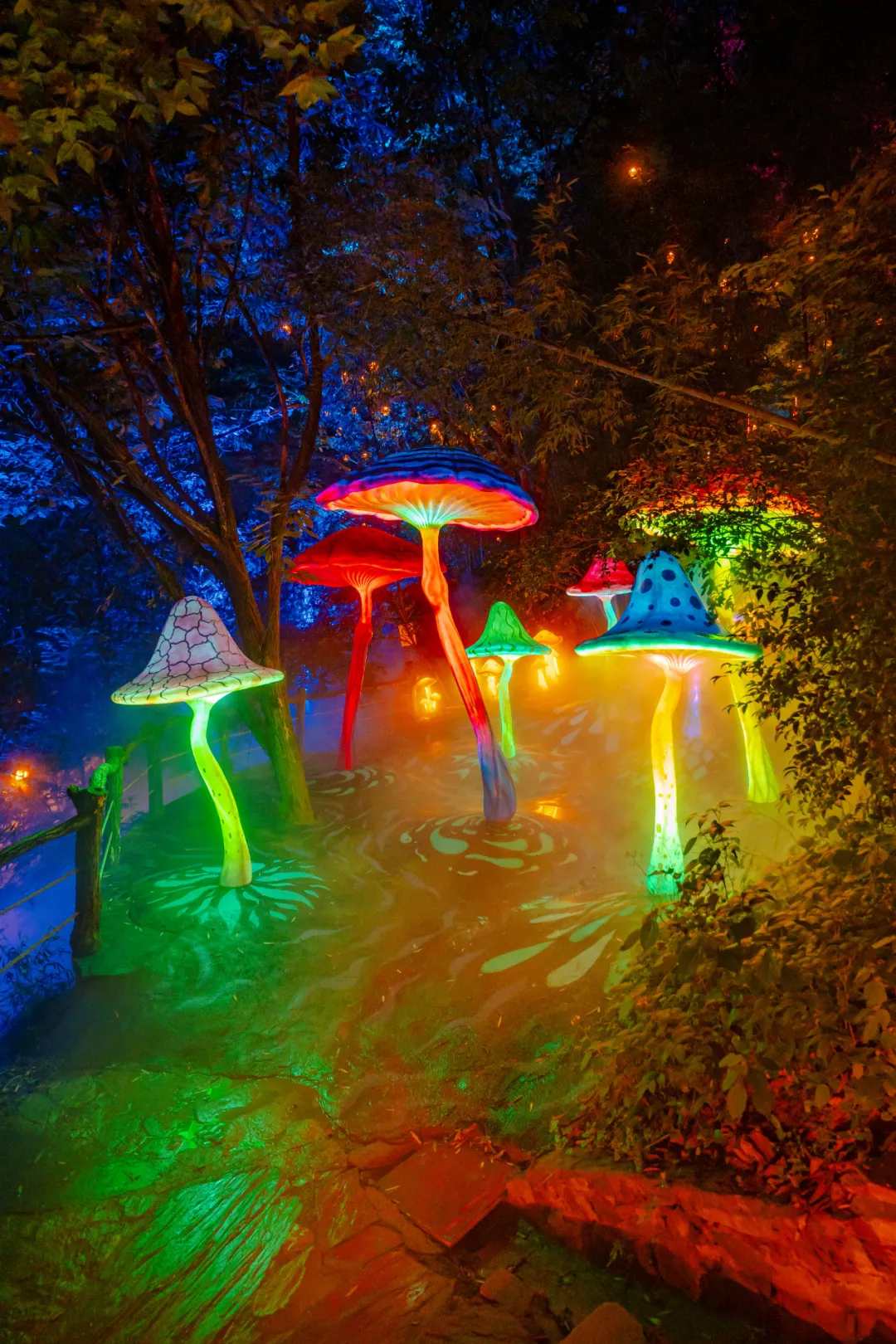 漫步魔幻流光森林,看奇幻光影與自然相融,二十多個(gè)夜游主題場景,加上各類互動(dòng)體驗(yàn)活動(dòng),呈現(xiàn)出一條高潮迭起的“行浸式”夜游路線,描繪出最天馬行空的“時(shí)空幻夢”。