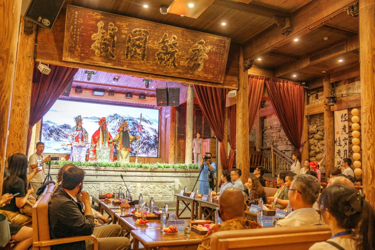 走進篁嶺村,村姑攔門酒熱情迎客,婺源儺舞以古樸面具與鼓點推高氛圍,盡顯文化魅力。論壇在地方特色表演中啟幕,婺源徽劇傳習(xí)所帶來 400 多年歷史的《水淹七軍》驚艷全場,“曬秋” 歌舞融合村落與農(nóng)作物,詮釋共生智慧,奠定 “各美其美” 的精神基調(diào)。