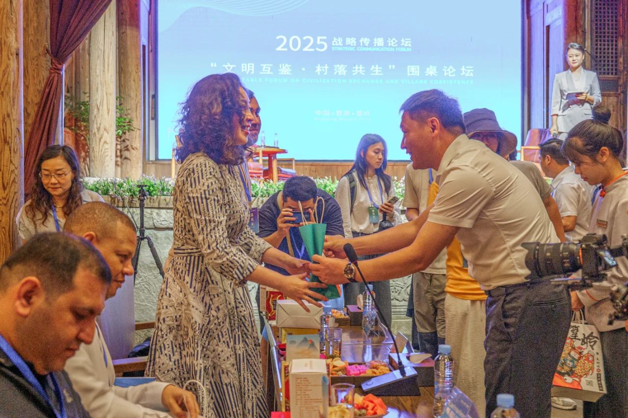 駐華使節(jié)與鄉(xiāng)村代表的交流環(huán)節(jié),成為文明交流的高光時刻。使節(jié)們就鄉(xiāng)村產(chǎn)業(yè)可持續(xù)發(fā)展、文化保護與國際傳播等問題提問,鄉(xiāng)村代表們結(jié)合實踐經(jīng)驗坦誠作答,既有本土智慧的分享,也有全球視野的探討,現(xiàn)場氣氛熱烈,充分體現(xiàn)了各美其美,美美與共” 的對話宗旨?;ベ浂Y物環(huán)節(jié),各地特色禮品傳遞著友好與情誼,進一步拉近了彼此距離。