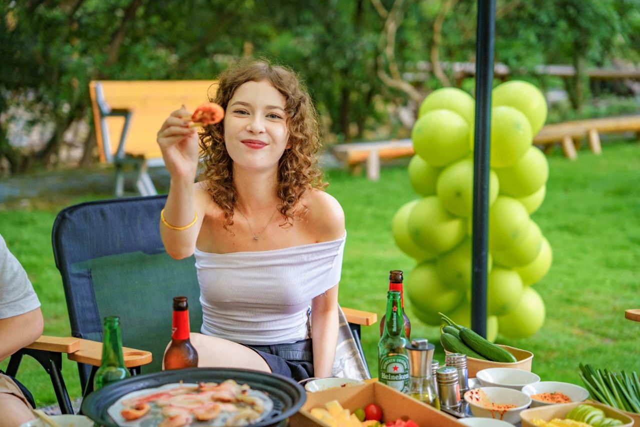 大天幕下的綠草坪,燒烤架再次升騰起煙火氣。啤酒碰杯聲、手沖咖啡的香氣與音樂聲交織,窩進(jìn)柔軟沙發(fā),在山風(fēng)與蟲鳴中,與朋友暢聊生活的瑣碎與遠(yuǎn)方。