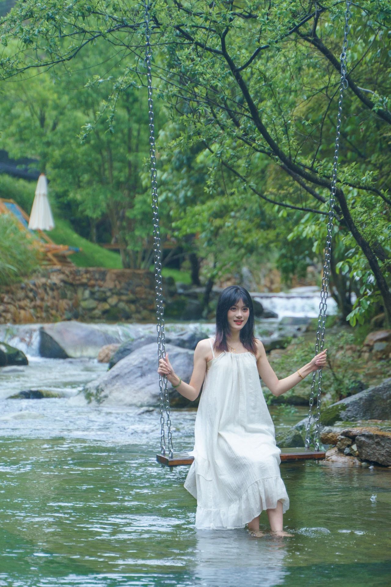 坐上秋千輕晃,水面漣漪與山影共舞。在水光交織中擺動(dòng),仿佛蕩入夏日寫給峽谷的情詩里。