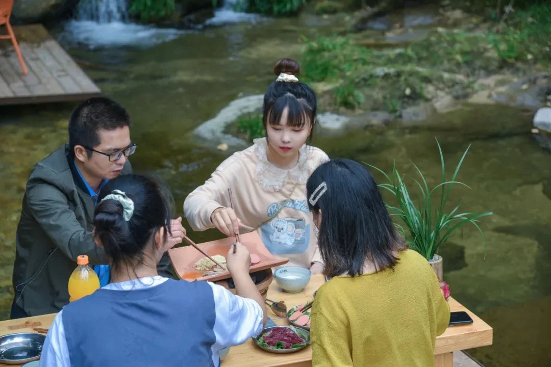 「山里人家」茶樓的臨溪卡座,是偷閑的絕佳之地。一壺皇菊在沸水中舒展,配幾樣手工茶點(diǎn),看陽光在朋友的側(cè)臉上跳躍,聽水流從腳邊蜿蜒而過,時(shí)光在此刻慢成一首詩。