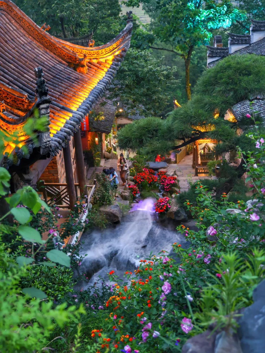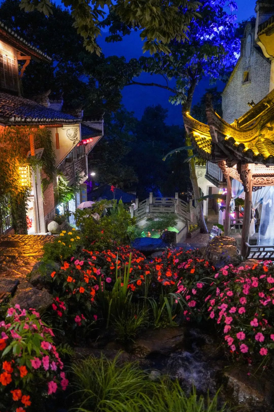 夜色下的花溪水街,有著最動人的煙火。巨大的水車吱呀旋轉(zhuǎn),懸浮土屋里“水倒流”的機關(guān)引人駐足。沿青石板漫步,水霧氤氳,兩岸燈火揉碎在溪流中,蕩漾成一片流動的琉璃紅塵。走累了一頭扎進(jìn)街角的邂逅你”酒吧,屋內(nèi),清酒一盞,知己二三,足以消磨江湖愁緒;窗外,燈火闌珊,轉(zhuǎn)身又跌入這溫柔的人間煙火。