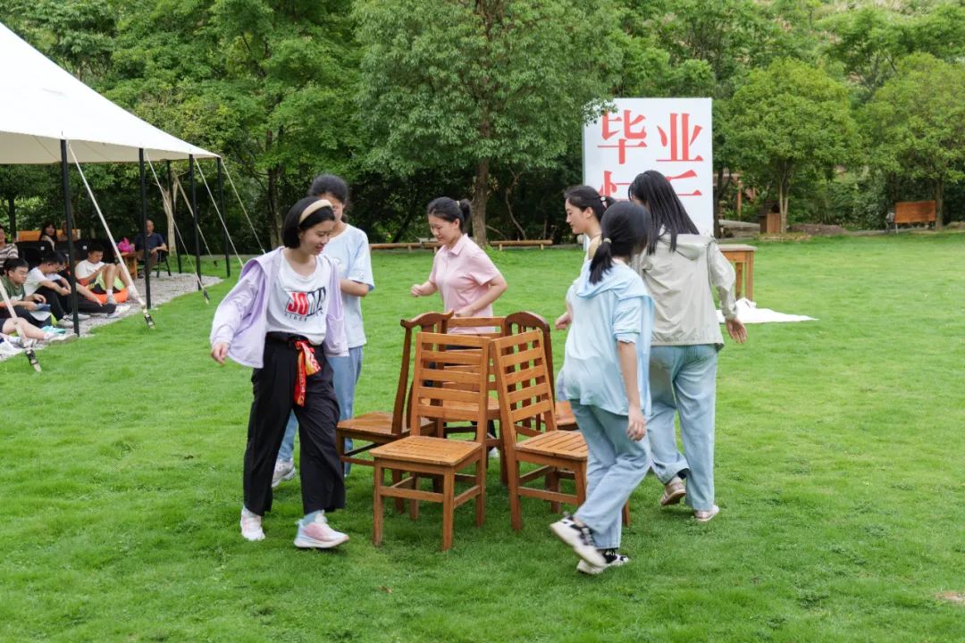 草坪趣味游戲環(huán)節(jié)更是精彩紛呈:音樂椅游戲中,6人圍繞5把椅子展開激烈角逐,隨著音樂驟停,上演著速度與反應(yīng)力的較量。聽歌識曲環(huán)節(jié)則用熟悉的旋律勾起共同的回憶,獲勝者還能獲得零食獎品,讓歡樂加倍。