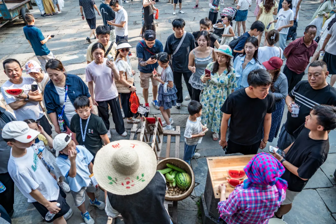 天街的石板路上,常能遇見挑著擔(dān)子的“賣果郎”——藍(lán)布衫上沾著桂花的香,筐里的南瓜圓滾滾,番茄紅得發(fā)亮。若能答上他隨口出的趣味農(nóng)題,那帶著晨露的鮮,便成了不期而遇的驚喜。原來,轉(zhuǎn)角遇到的不僅是瓜果,更是一份來自土地的慷慨。