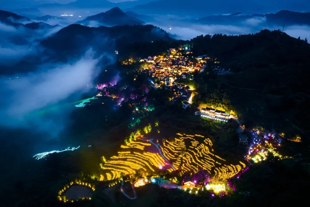 夜晚的篁嶺藏著更多驚喜!追一場染紅天際的夕陽晚霞,看非遺板龍燈在古巷里蜿蜒游走;魔幻流光森林里,燈光與樹影交織出童話秘境,踩過會發(fā)光的石板路,仿佛闖進(jìn)宮崎駿的動畫!