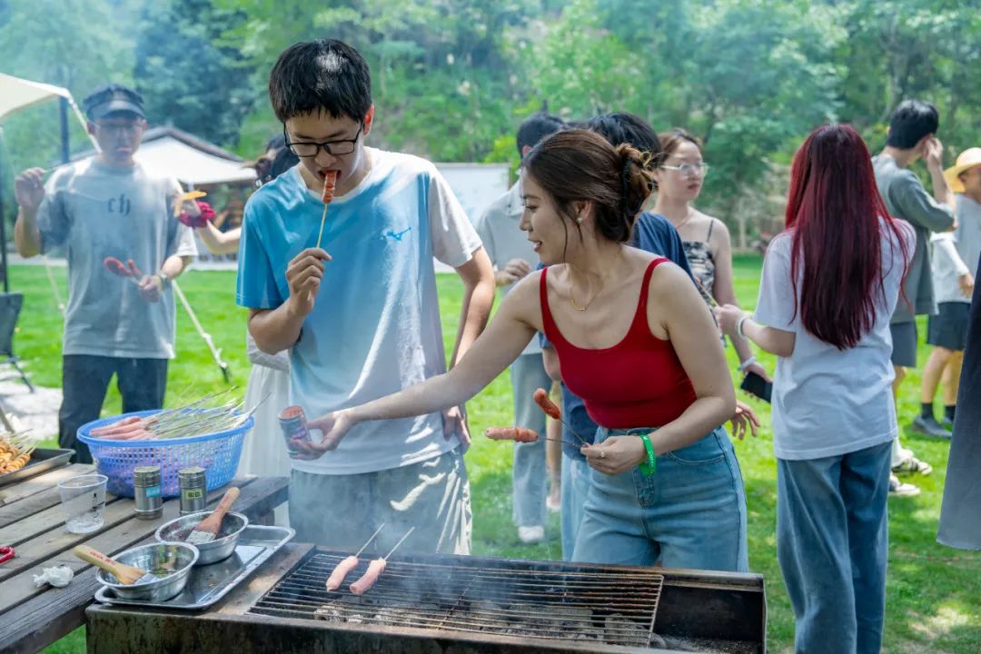 天幕下是燒烤露營的主場!新鮮的肉串在高溫炙烤下滋滋冒油。秘制醬料刷得從容不迫,翻動間香氣四溢。一手握著焦香四溢的烤串,一手舉起冰爽的啤酒或汽水,在滋滋作響的煙火氣中與好友碰杯談笑。窩進舒適的露營椅,山風送爽,蟲鳴為伴
