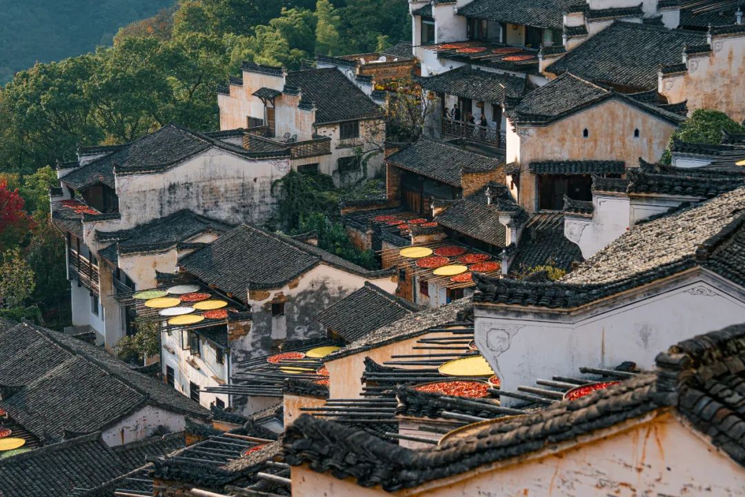 與此同時,大自然也毫不吝嗇它的顏料。楓香紅葉漫山遍野,與古樸的徽派建筑相映成趣;金黃的皇菊、成熟的稻谷,共同編織著深秋的浪漫。在曬工坊、五桂堂觀景臺等地,你可以找到拍攝這片絢爛秋色的最佳視角。