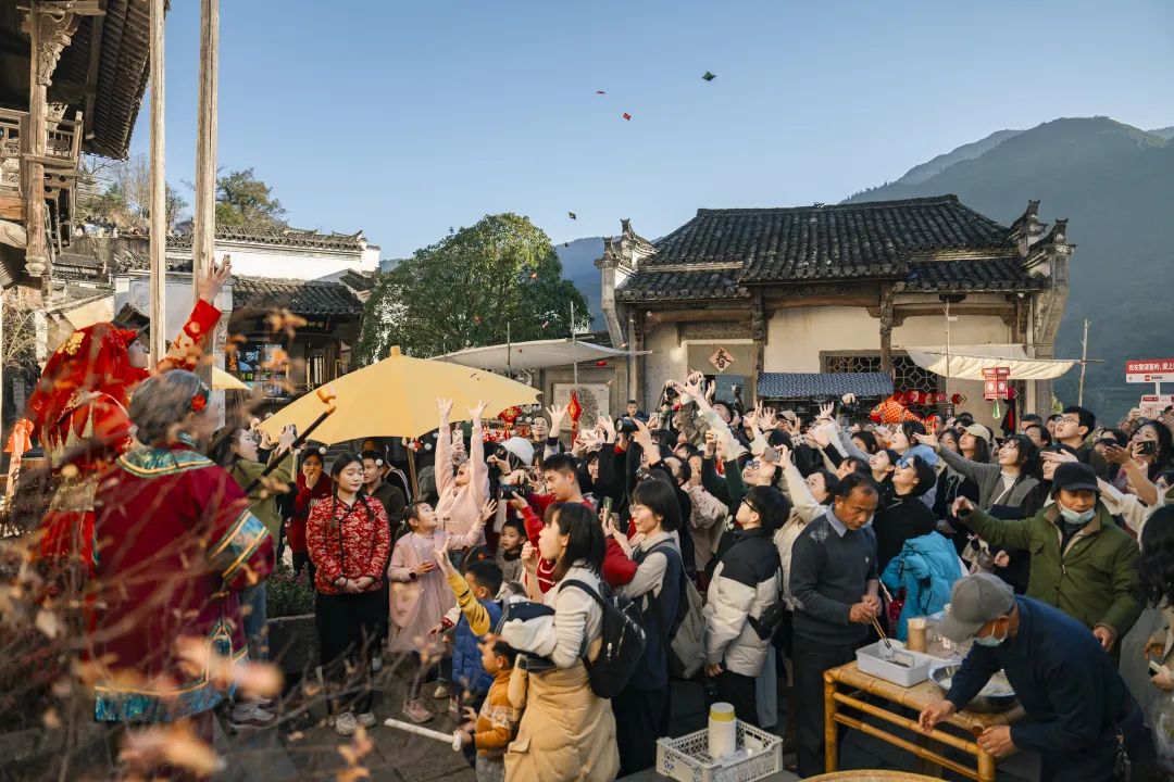冬至來臨,篁嶺的民俗文化季也隨之開啟白天,你可以觀看熱鬧的古徽州婚俗表演;入夜后,則可以邂逅迷人的非遺燈彩和蜿蜒舞動的板龍燈,在篁嶺的冬日里,你能感受到最濃郁、最溫暖的民俗年味。若是遇上下雪,那就更美了——積雪覆蓋著屋頂、曬桿,儼然一幅“篁嶺曬雪”的絕美畫卷。
